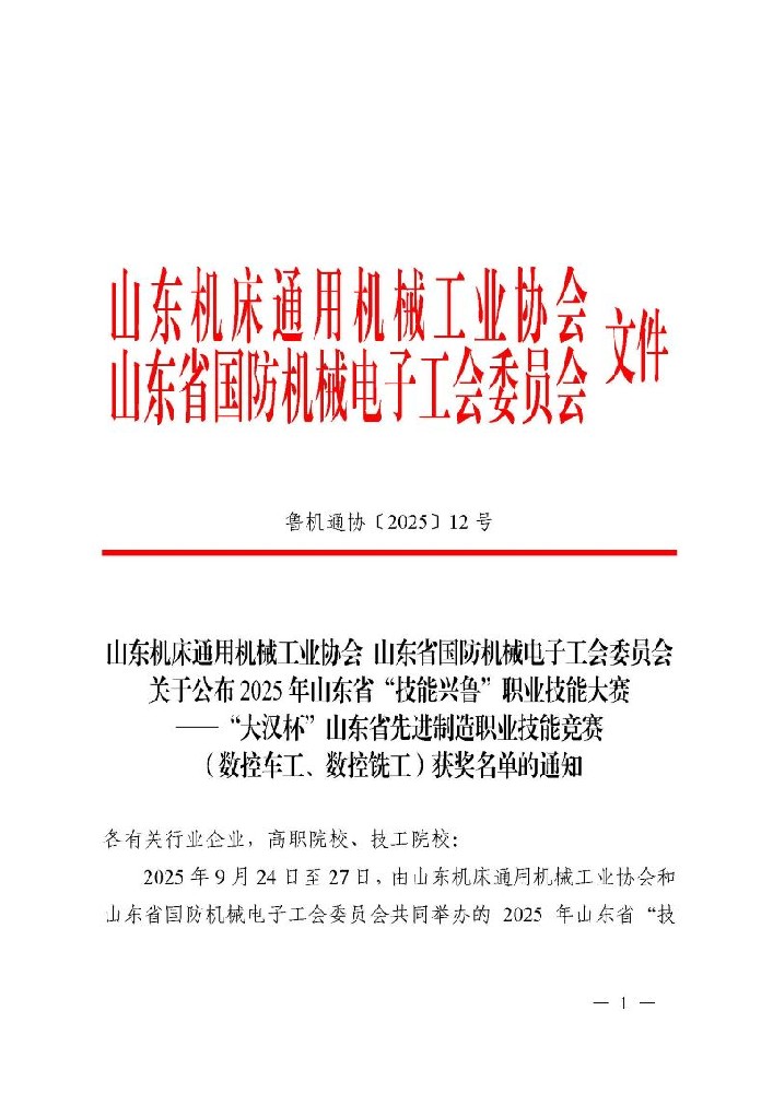 山東省先進(jìn)制造職業(yè)技能競賽(數(shù)控車工、數(shù)控銑工)獲獎通知.p···…
